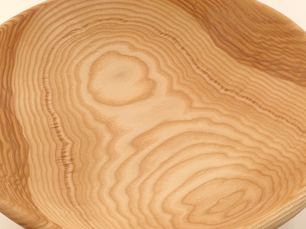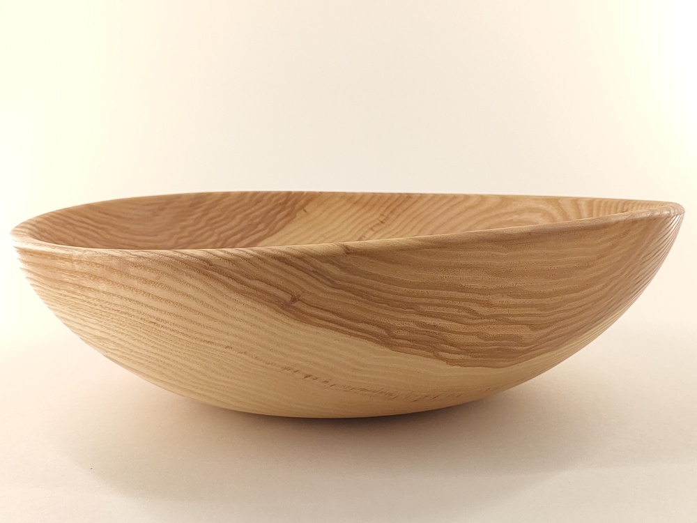 Cechy: ręcznie wykonana, cienkie ścianki, delikatnie pofalowany rant, jasny jesion z ciepłymi odcieniami brązu