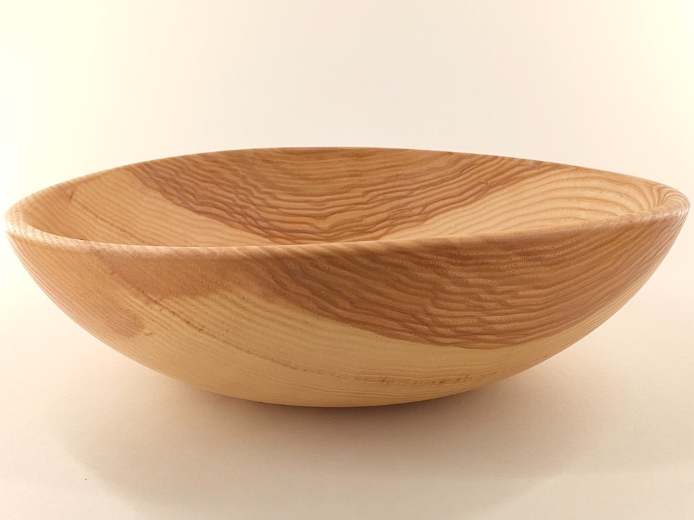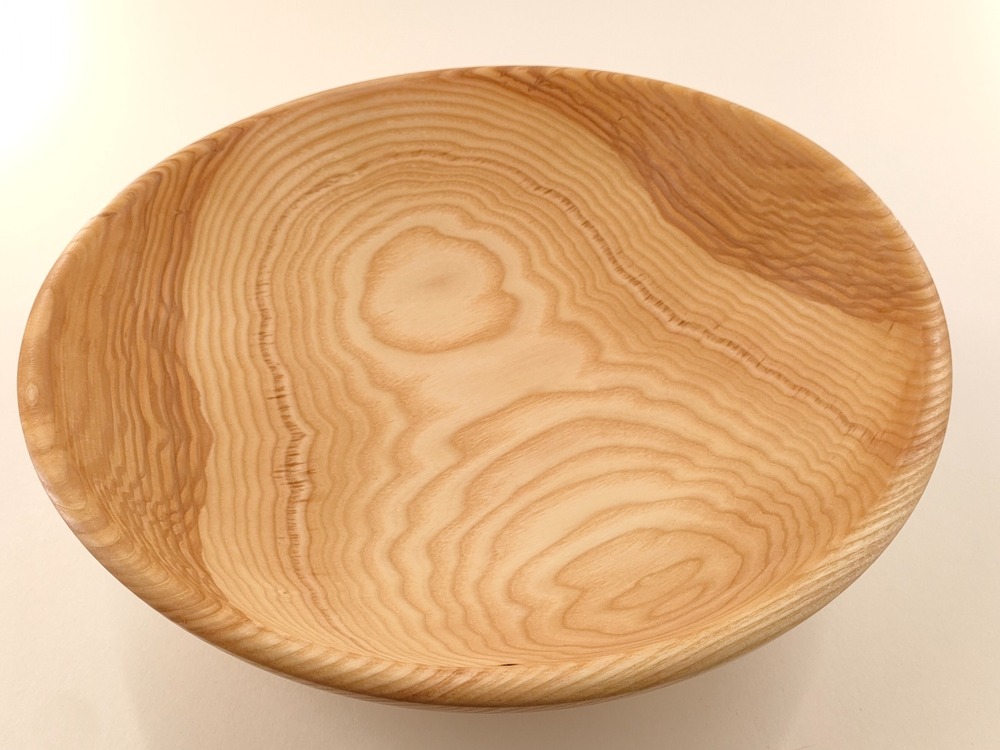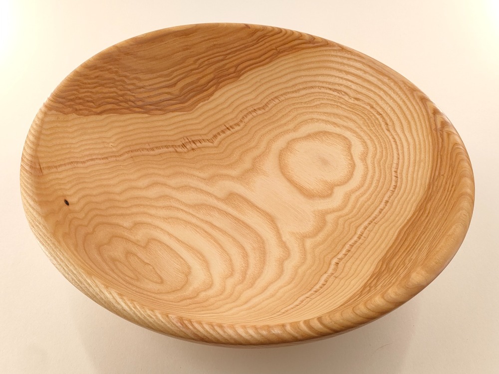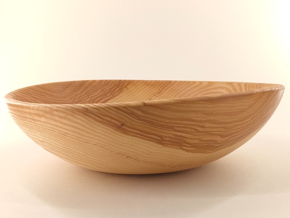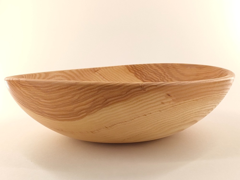 Kod produktu: 1000 Nr 081Ręcznie toczona duża misa z jednego kawałka starego jesionu o efektownych, naturalnych falach słojów i delikatnie pofalowanym rancie. Jasnożółte drewno z ciepłymi brązowymi akcentami tworzy wyjątkowy charakter naczynia.