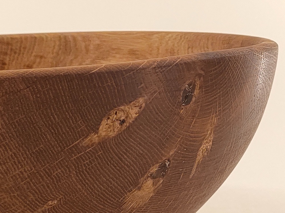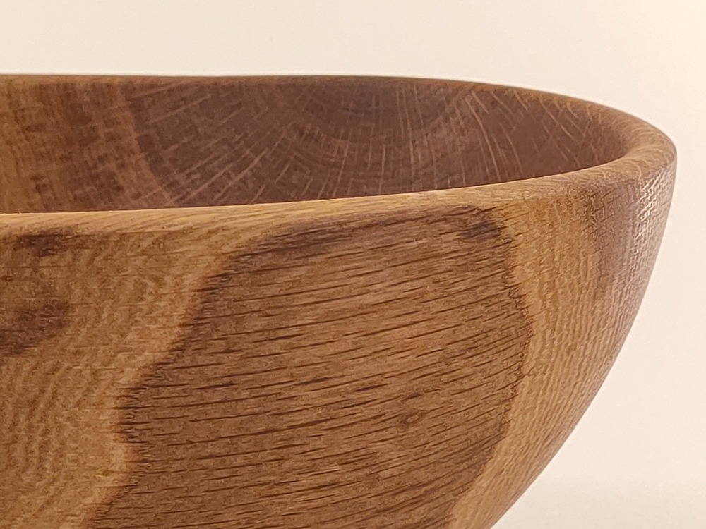 Cechy: ręcznie wykonana, cienkie ścianki, subtelne ciepłe przejścia tonalne, drobne słoje, stary dąb