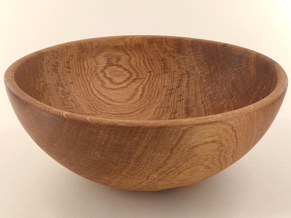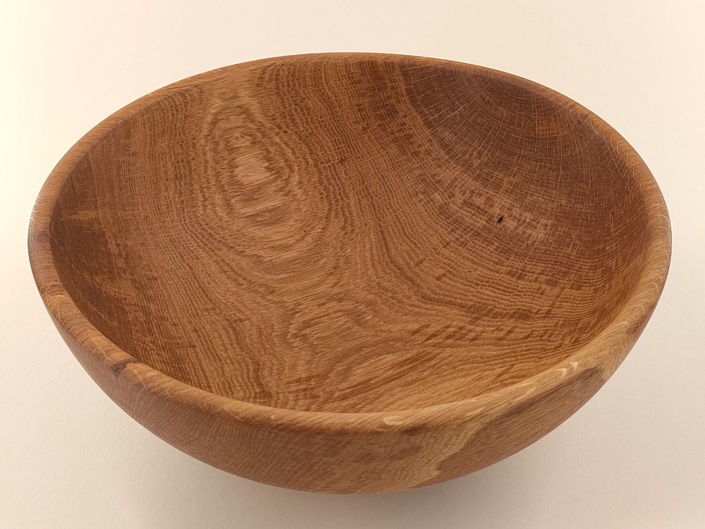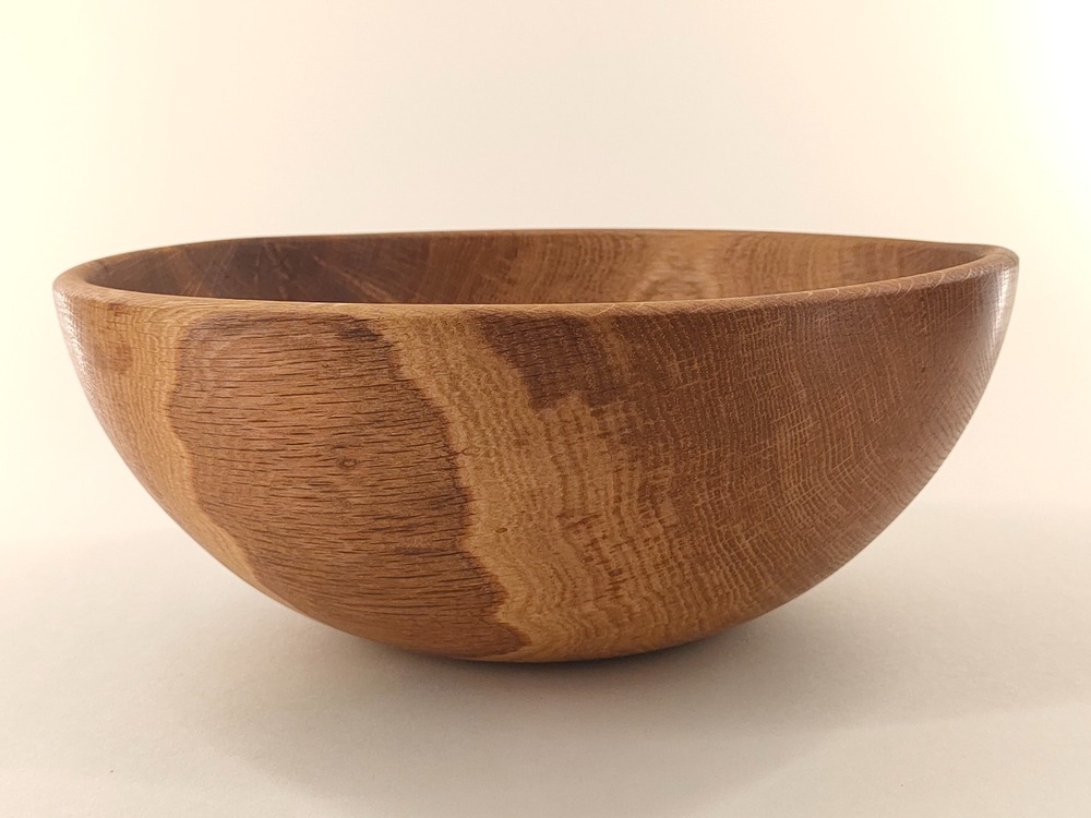 Kod produktu: 1002 Nr 080Ręcznie toczona misa z jednego kawałka stuletniego dębu o drobnych, delikatnych słojach i ciepłych, tonalnych przejściach barw. Wyjątkowa struktura drewna nadaje jej subtelny, elegancki charakter.