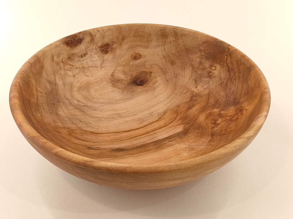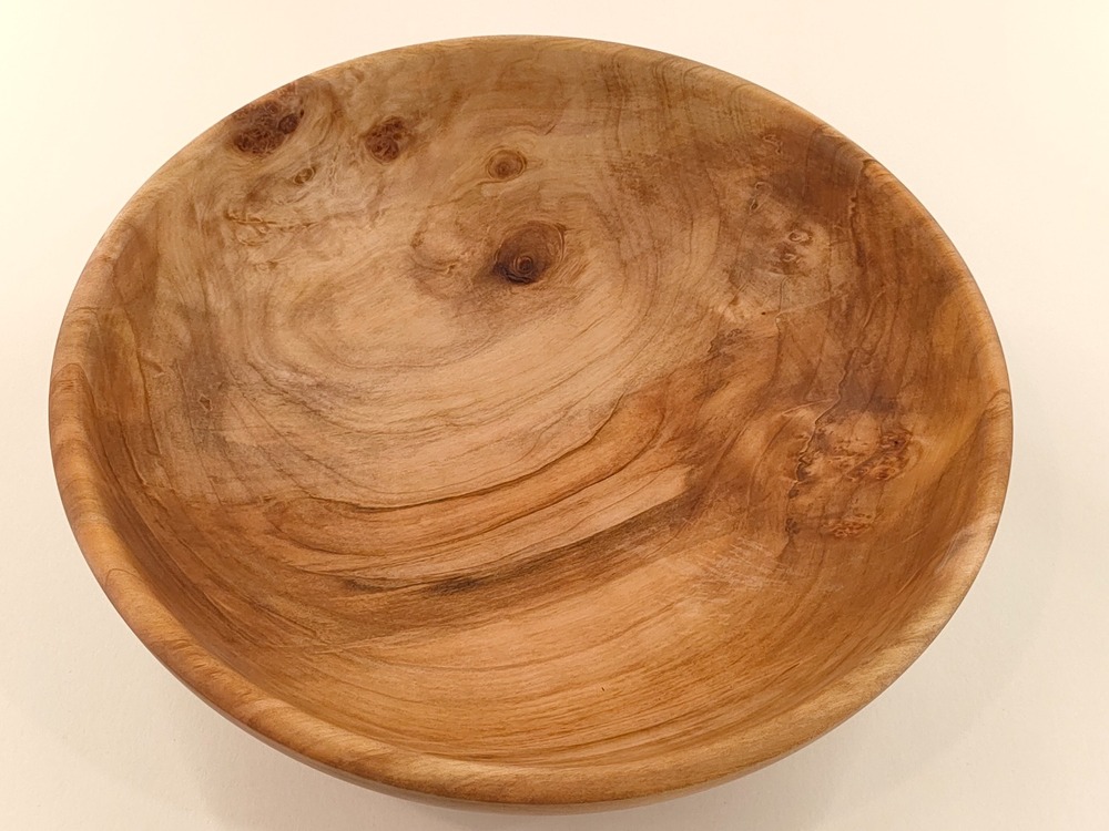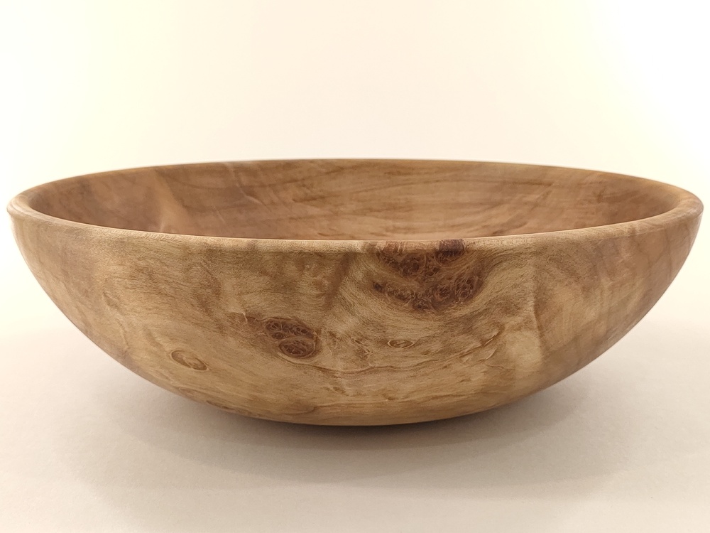 Kod produktu: 1003 Nr 076Ręcznie tocza misa z klonu z wyraźną czeczotą — barwne, teatralne słoje tworzą tu naturalny, dekoracyjny wzór. Subtelna forma i przemyślana lekkość konstrukcji nadają naczyniu elegancki, rzemieślniczy charakter.