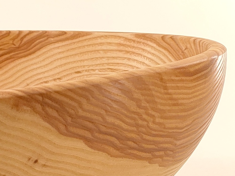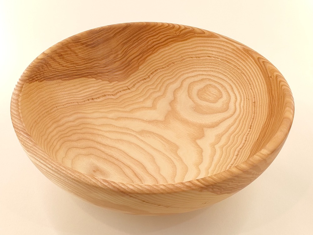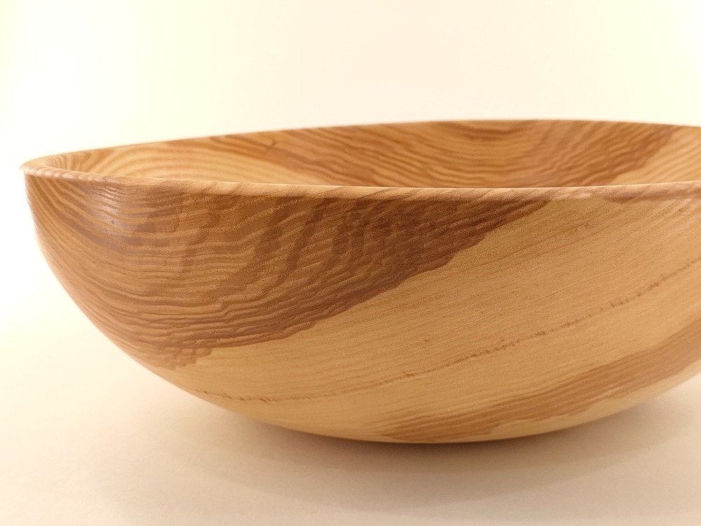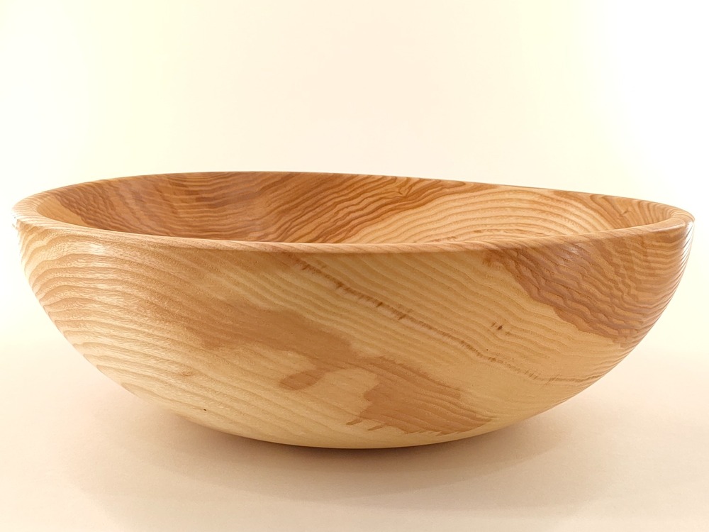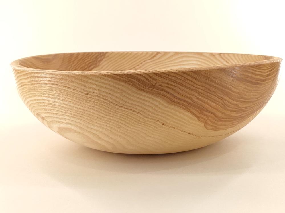 Kod produktu: 1009 Nr 102Ręcznie tocza duża misa z jasnego jesionu, w której naturalne, czyste drewno zostało podkreślone wyraźnymi ciemniejszymi plackami słojów. Efektowne przejścia barw nadają egzemplarzowi przyjemny, sympatyczny charakter.