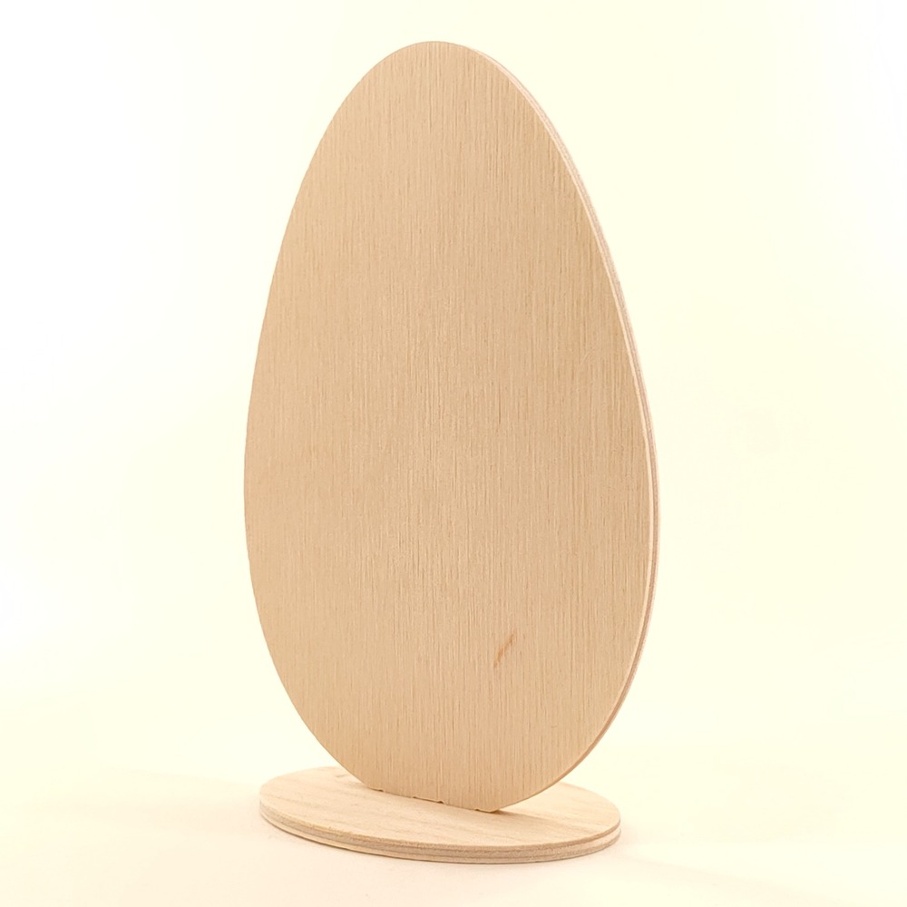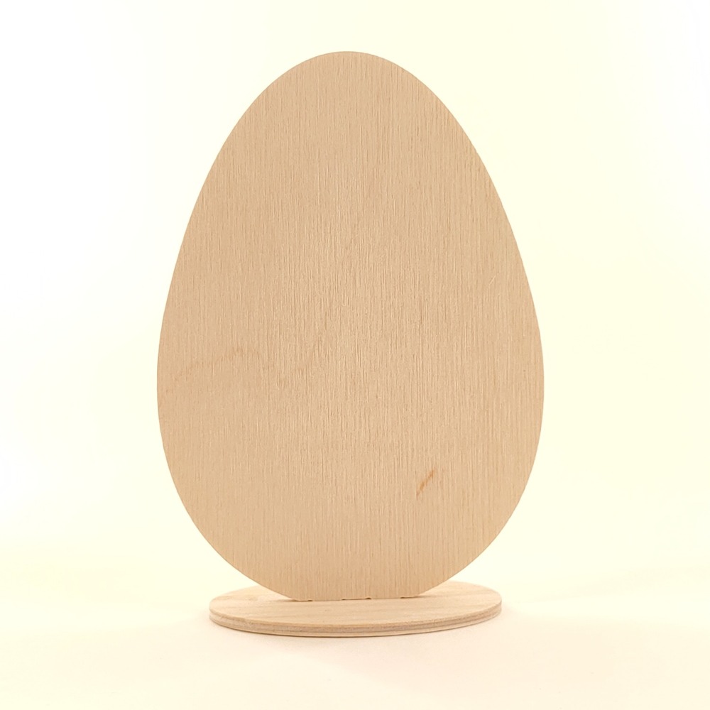 Stojak jajko, drewniana dekoracja wielkanocna wykonana ze sklejki brzozowej o grubości 4mm na stabilnej owalnej podstawce.