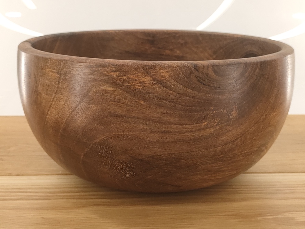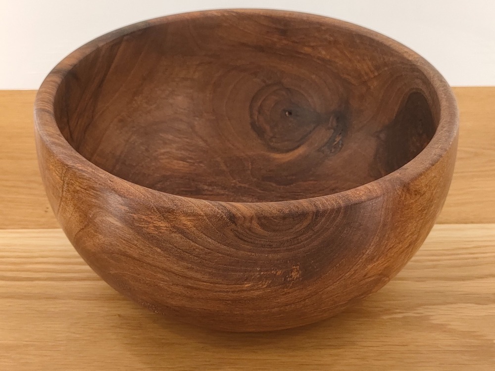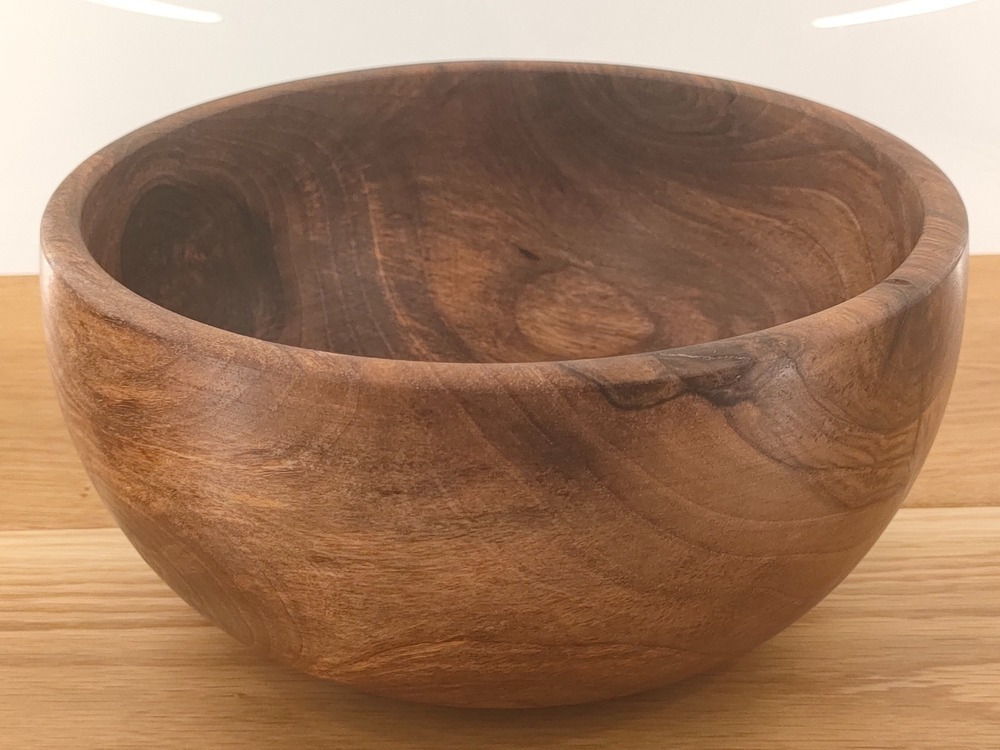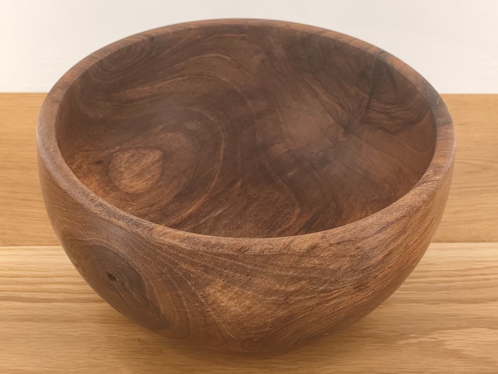 Doskonale sprawdzi się jako misa na owoce, orzechy lub po prostu ozdobny akcent wnętrza. Naturalny olej podkreśla głębię koloru i chroni powierzchnię drewna przed wilgocią.