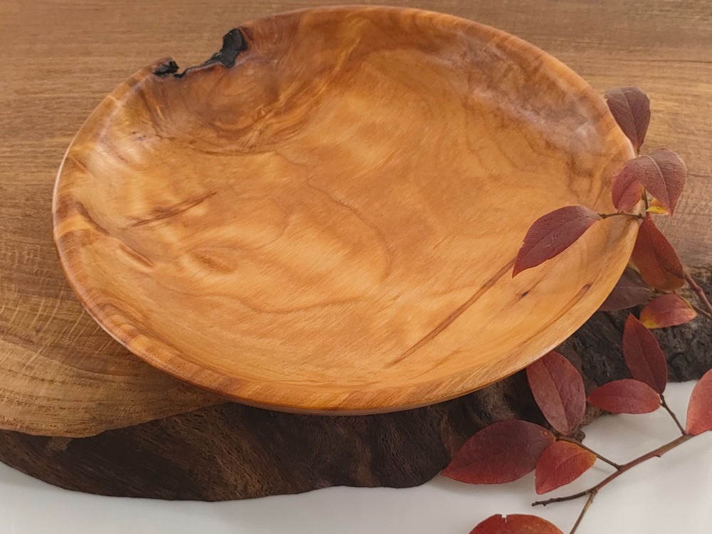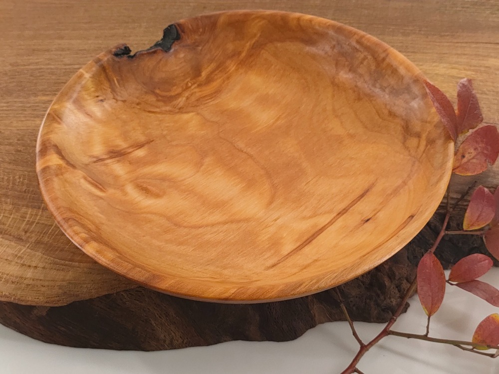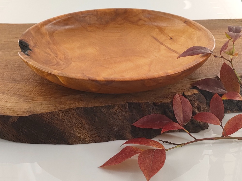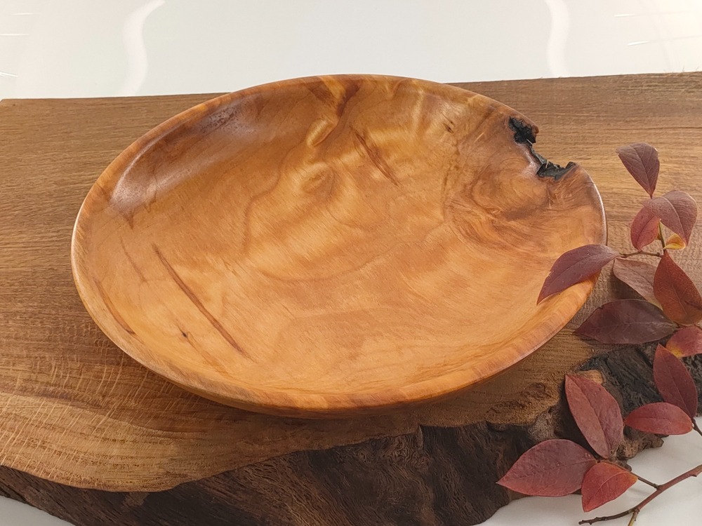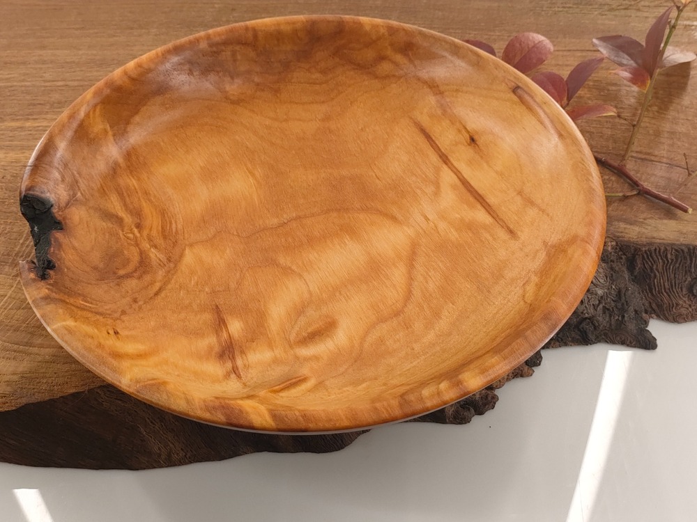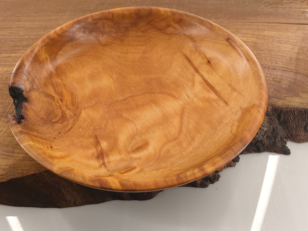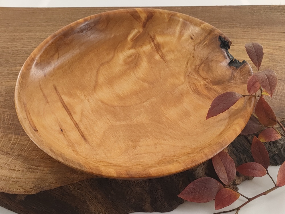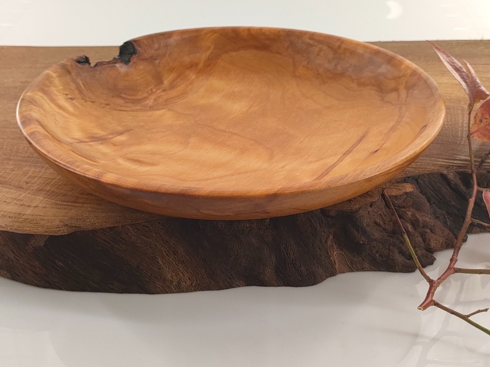 Kod produktu: 982 Nr 094Ręcznie wykonany w naszej pracowni talerz z starej kolorowej brzozy o subtelnych przejściach tonalnych i naturalnym, ciepłym odcieniu drewna. Delikatny, płaski kształt podkreśla unikatowy rysunek słojów i elegancką prostotę formy.