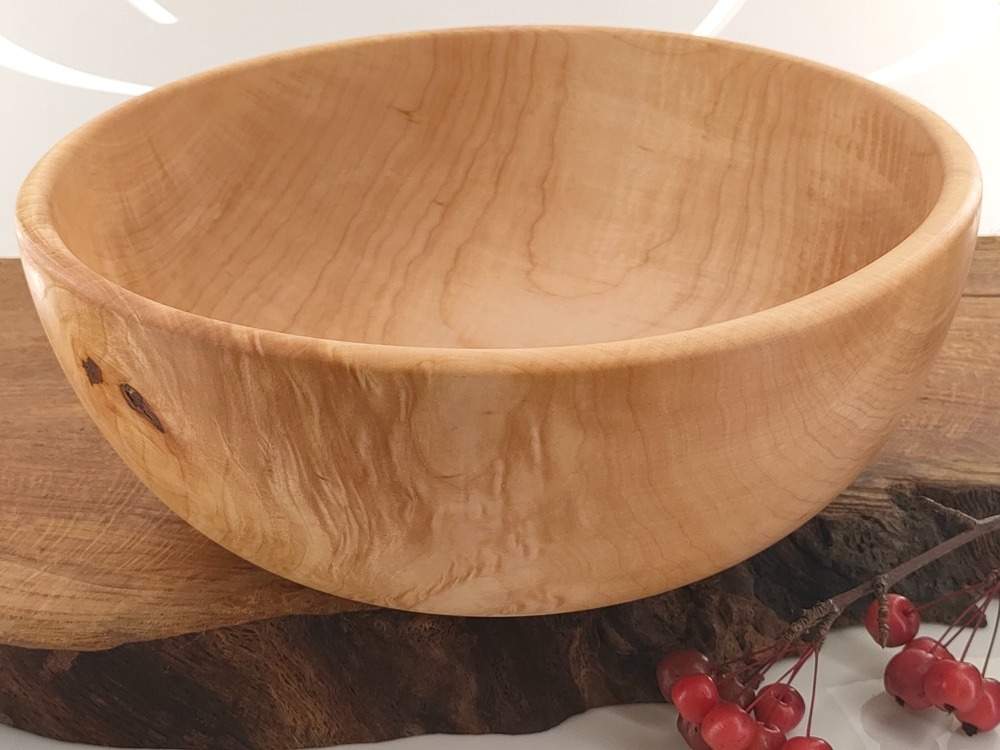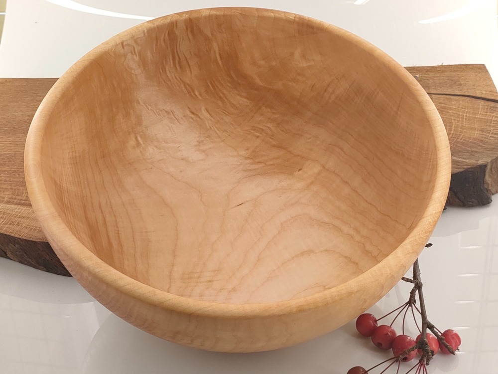 Cechy: duża misa, ręcznie wykonana, z jednego kawałka jasnego klonu