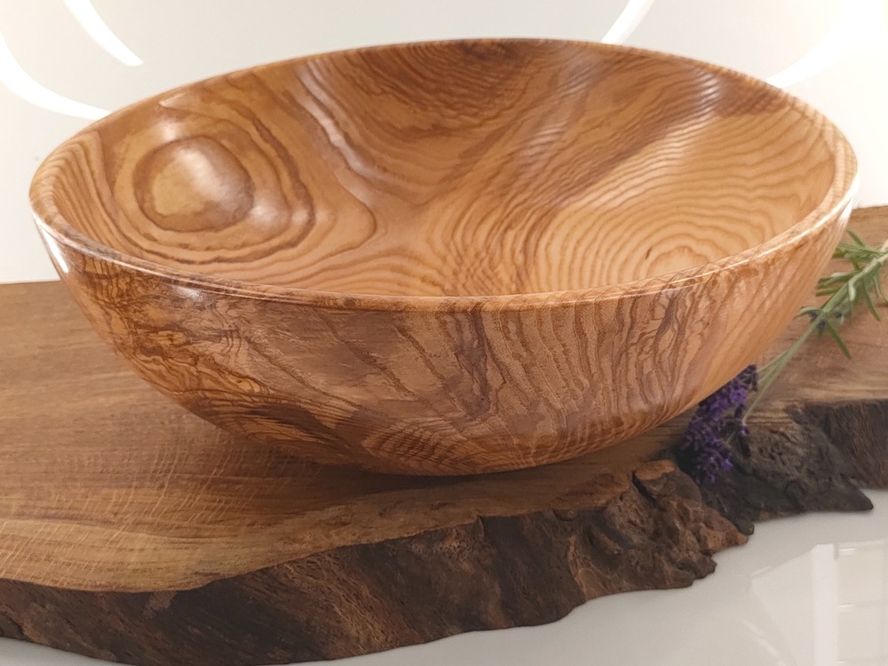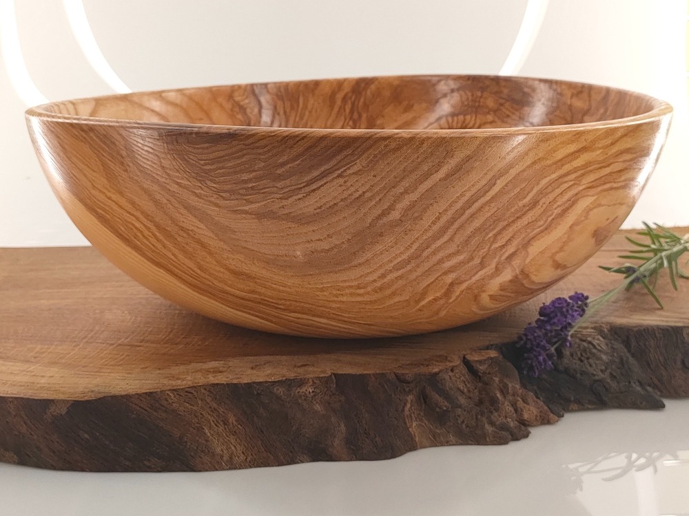 Idealna jako misa użytkowa – owoce, sałatki, przekąski – ale także jako dekoracyjny element wnętrza. Naturalny olej lniany podkreśla kolory drewna i zabezpiecza powierzchnię.