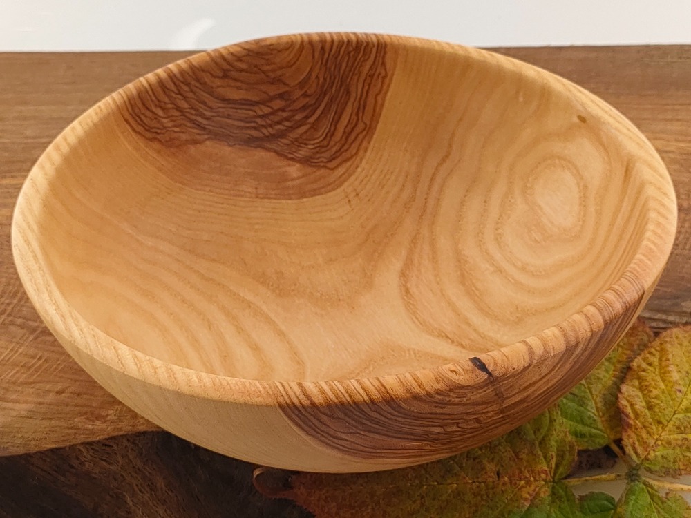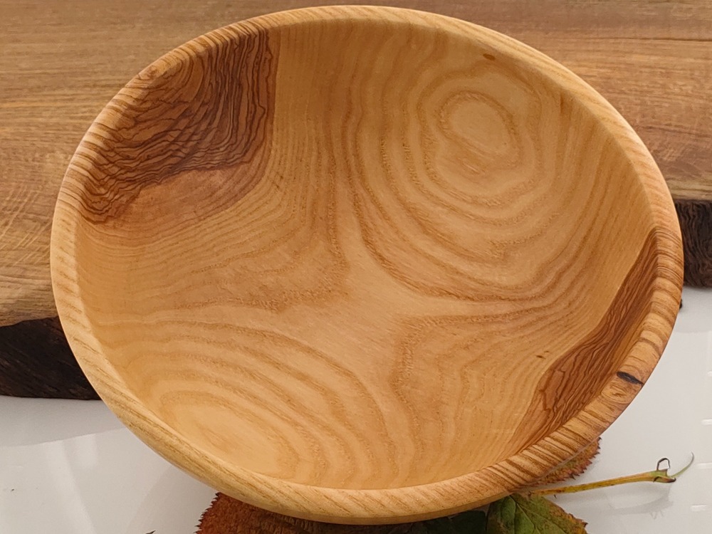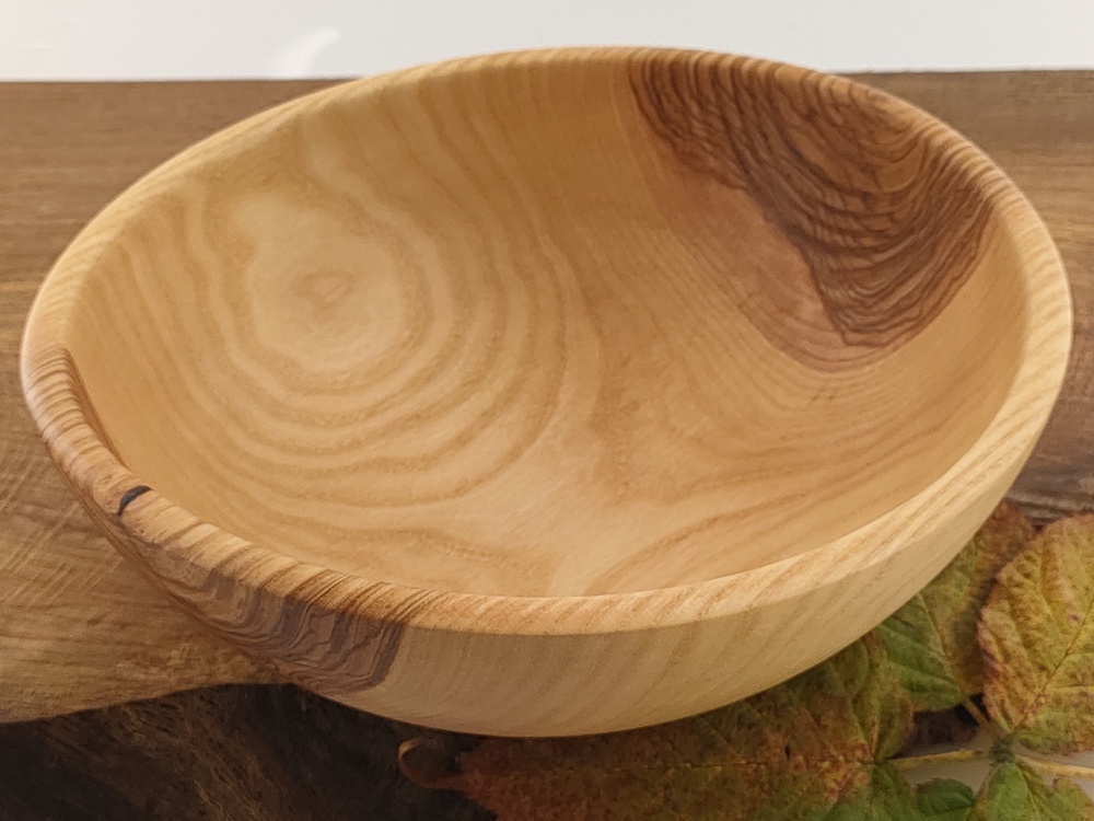 Kod produktu: 988 Nr 090Ręcznie toczona misa z jasnego jesionu, wyjątkowa dzięki dwóm pięknym ciemnym plamom, które nadają jej niepowtarzalny charakter. Każdy egzemplarz jest unikatowy i pełen naturalnego uroku drewna.