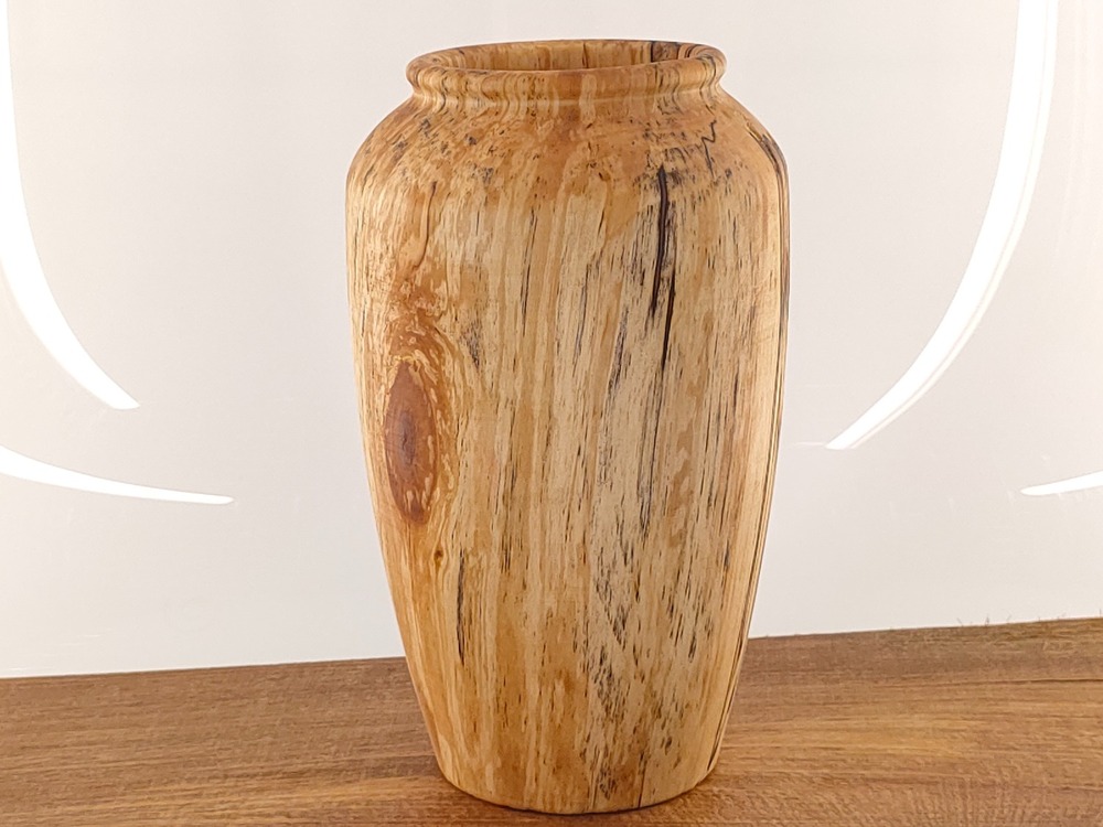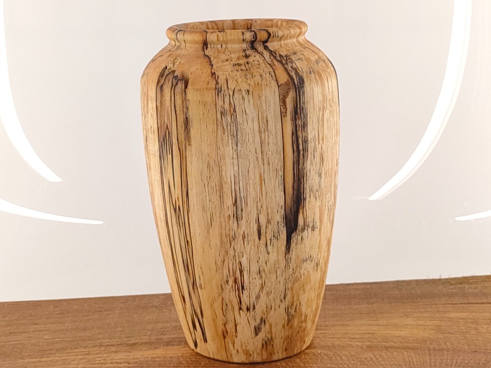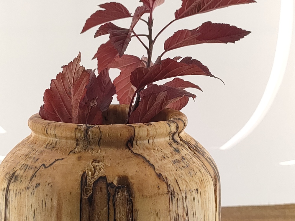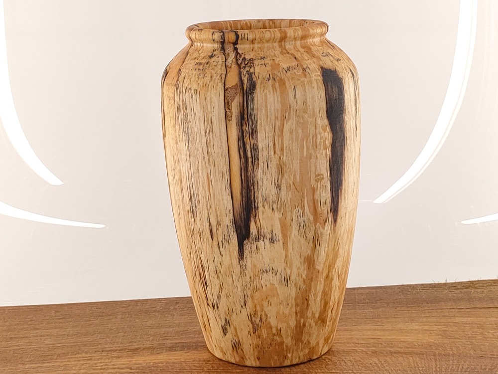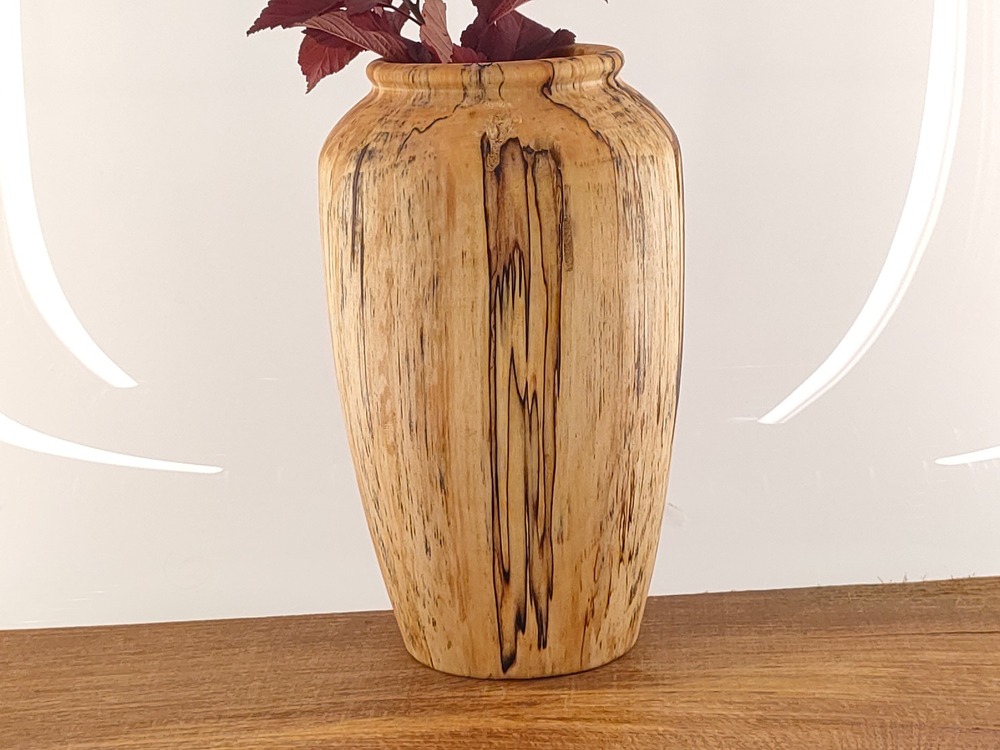 Kod produktu: 990 Nr 088Ręcznie toczony wazon z kolorowej brzozy ze spaltingiem. Naturalne ciemne linie i nieregularne wzory powstałe w procesie spaltingu nadają mu wyjątkowy charakter. Klasyczny kształt i ciepła kolorystyka sprawiają, że doskonale prezentuje się w każdym wnętrzu.