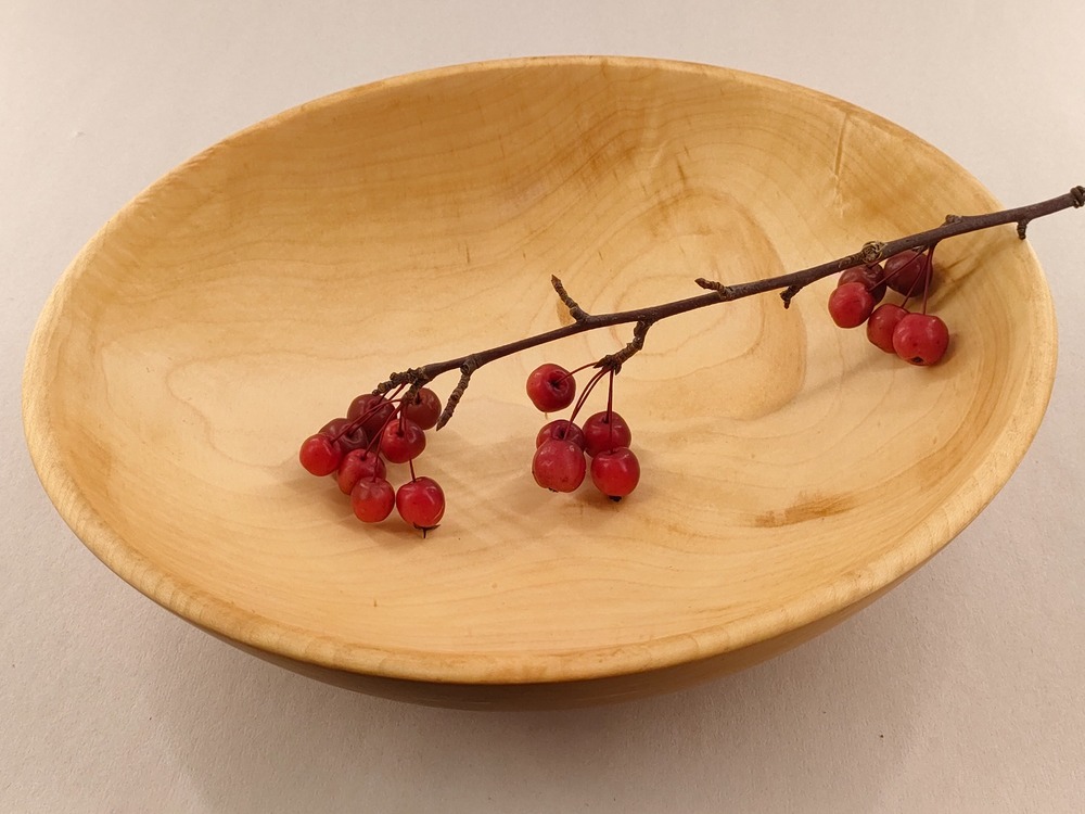 Kod produktu: 996 Nr 083Ręcznie tocza z jasnego klonu z subtelnym tonalnym przejściem do ciemniejszego odcienia na rancie. Duża średnica i solidna konstrukcja sprawiają, że drewno prezentuje się efektownie i elegancko.