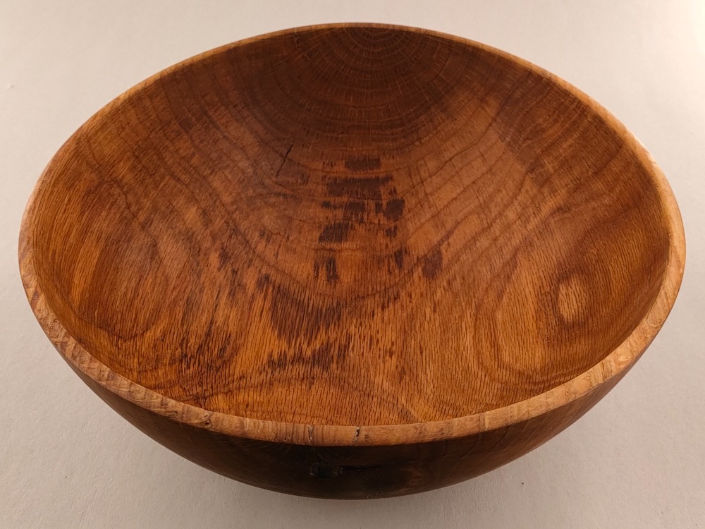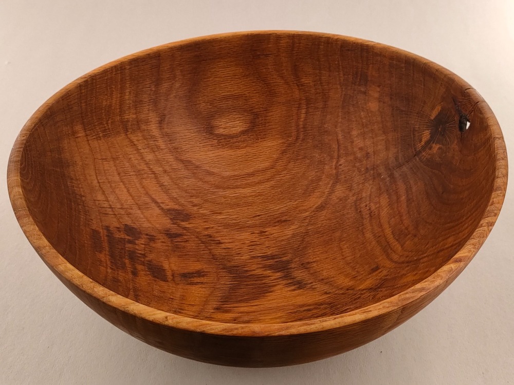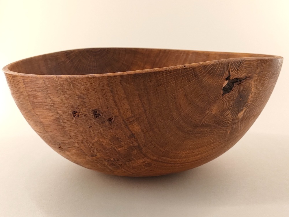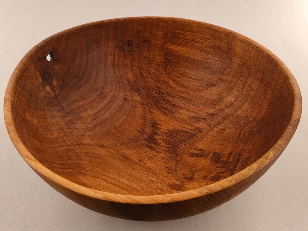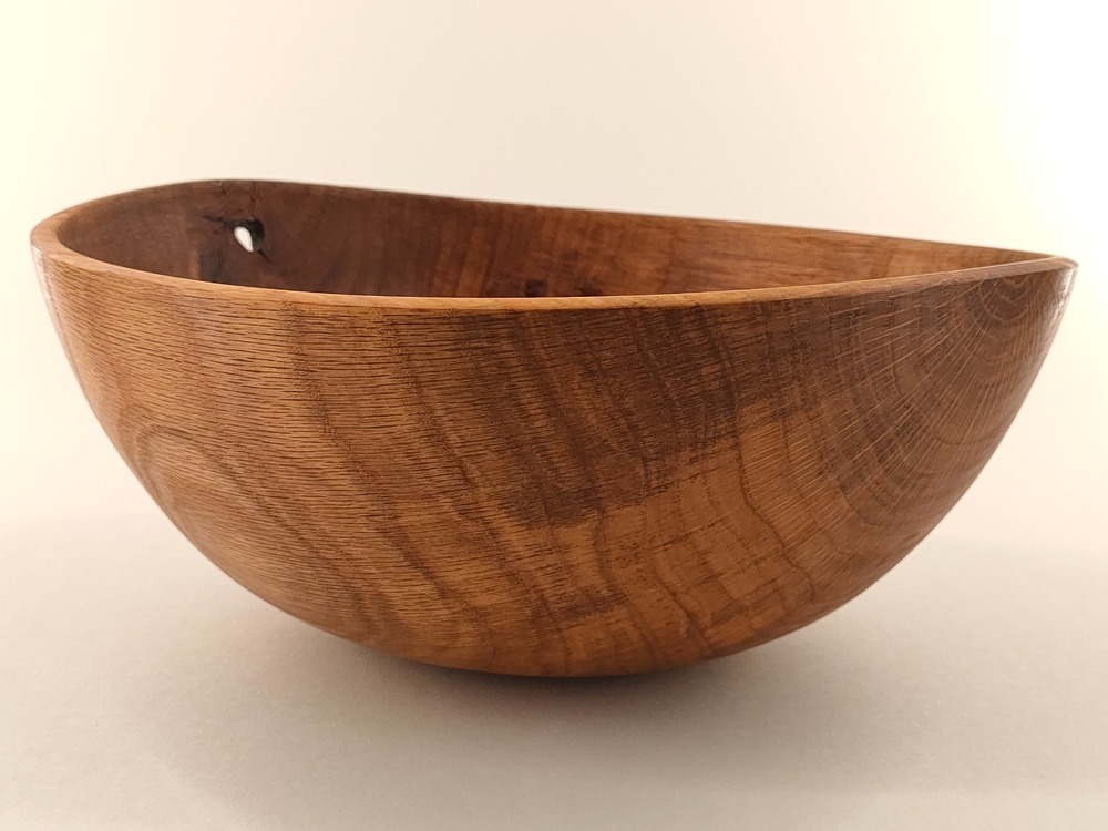 Kod produktu: 998 Nr 082Ręcznie toczona misa z jednego kawałka starego dębu o wyjątkowym charakterze. Naturalna fala wzdłuż krawędzi i subtelna dziura po sęku dodają jej autentyczności i rustykalnego uroku.